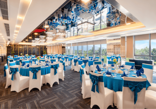 Pho Hoi Room is designed with a minimalist motif that stands out on a dark background. The lighting system is meticulously crafted to bring elegance and modernity to sparkling parties. With a maximum capacity of 100 guests and a direct view of the beautiful My Khe beach, it is the perfect venue for conferences, product introduction programs, receptions, and exciting party moments that will be memorable.